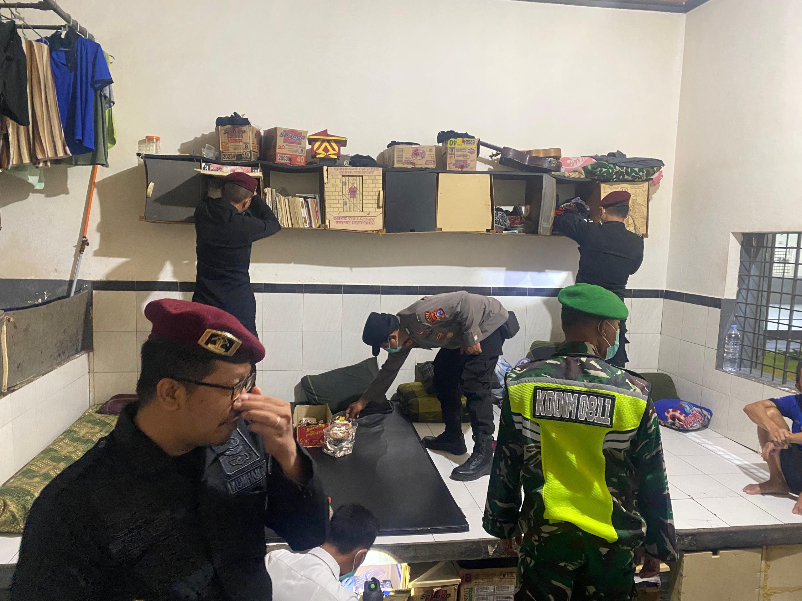Razia gabungan dilaksanakan di sejumlah kamar blok hunian pada Sabtu (11/10) dini hari. Kegiatan ini dipimpin langsung oleh Kepala KPLP, Kasi Adm Kamtib, dan Kasubbag TU, serta melibatkan unsur TNI dan Polri sebagai Aparat Penegak Hukum (APH).