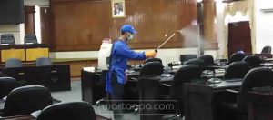 Pendopo dan Masjid Disemprot Disinfektan
